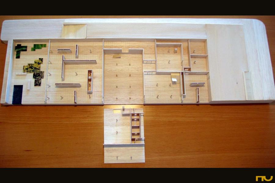 La Nova Galeria Nacional, tancament de la carrera de Mies i retorn a la ciutat que havia abandonat el 1938 és un dels seus majors projectes: la coberta mesura 64,80m de costat i la retÃcula ortogonal de bigues d'à nima plena, de 1,80m d'alçada que la suporten forma uns requadres de 3,60m. vuit columnes metà l·liques cruciformes -dos per costat- de 8,40m d'alt i pintades de negre van reduint suaument la seva secció fins a l'encontre amb les vores de la graella resolt mitjançant una articulació. La distà ncia dels suports al final del voladÃs a la cantonada és de 18 m, compensant aixà les fletxes en el centre de la malla. La coberta va ser aixecada com una sola peça mitjançant 16 gats, col·locats als llocs on després es col·locarien les columnes. Aprofitant el desnivell est-oest, Mies disposa l'edifici en dos nivells; el nivell superior està dominat pel hall totalment vidrat de 50,5 de costat i lliure de columnes, com a "espai universal" destinat a exposicions temporals i el nivell més baix, prolongat en un pati, es dedica a les col·leccions permanents. És indiscutible l'evolució constructiva i estructural d'aquest projecte de Mies alhora que innegables les seves referències schinkelianas. Això apareix confirmat per la percepció de l'espai, l'interior casetonat, l'ús de l'estereobat i de l'estilobat, l'ordre del peristil format per columnes cruciformes (on Mies sembla interpretar l'à bac i l'equÃ), o el ritme entre els rigidizadors de l'à nima de les bigues, evocadors de les metopes clà ssiques. En definitiva, Mies presenta un equivalent actual del temple grec, només possible a través de la puresa estructural, el correcte ús dels materials i l'escala monumental. Si la perspectiva havia jugat un paper fonamental en els grecs, Mies juga amb la geometria -com pot veure's en l'alçat trapezoïdal de les columnes per forçar l'efecte monumental o en el control de les fugues de les lÃnies del paviment o de la malla estructura. Malgrat que les façanes són aparentment iguals des del punt de vista del tractament formal, la que mira a l'Est passa a ser el principal en la mesura que des de les à mplies escales exteriors -hi ha unes altres dues escalinates tangents a sud-est i nord-oest- es constitueix un eix de simetria que travessa la façana i queda remarcat amb la disposició de les escales d'accés al nivell inferior. |