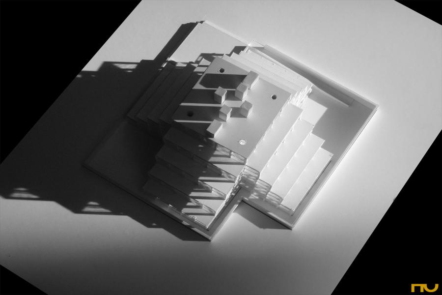 En una mirada rà pida, aquest exercici se situa a cavall entre dos projectes molt coneguts de Kahn: els Banys de Trenton (1955) i la Biblioteca Exeter (1966) encara que podem trobar més exemples en aquest deceni, com el Martin Research Institute (1955-7). Més enllà d’aquests vincles basats en l’ús del quadrat, la puresa de la forma i la idea de monumentalitat, en el pla funcional d’aquest projecte prefigura solucions d’organització de la planta i, en especial, de la secció, com és el cas dels dobles espais situats a la perifèria.