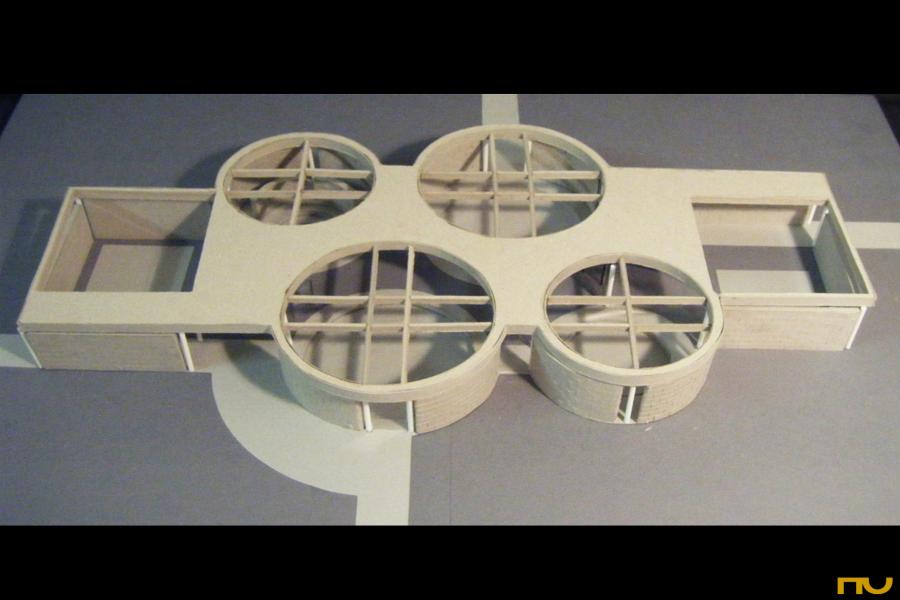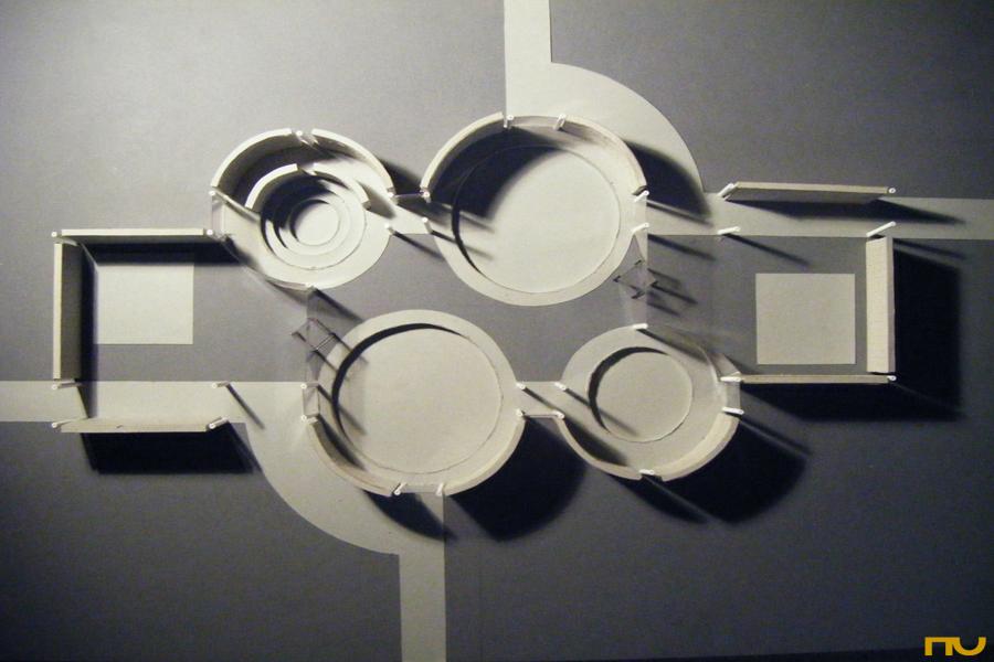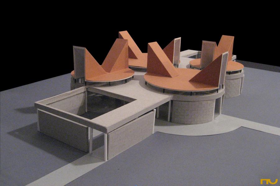 D’altra banda, cadascun d’aquests espais circulars tenia una coberta independent suspesa per sobre del forjat gràcies a una estreta tira de finestres “claristori”, recolçada en un entramat de jàsseres de formigó armat vist. Allò estava destinat a provocar un efecte d’ingravidesa enfatitzat per la il·luminació d’unes claraboies contraposades que marcaven a coberta un bosc de volums triangulars recoberts de coure. La orientació diferent d’aquestes claraboies i els espais a l’interior juntament amb les seves cobertes circulars donaran al conjunt un efecte dinàmico-rotacional que justifica el nom amb el que van Eyck bateja el projecte. L’ús d’elements clàssics de l’arquitectura religiosa recol·locats en un ordre diferent sense cap mena de restricció cultural, i la focalització en la individualitat i sungularitat del detalls donen a la obra d’Aldo van Eyck un profund rerefons antropològic en el que l’home modern, està davant Déu sense oblidar-se del món en el que es troba.