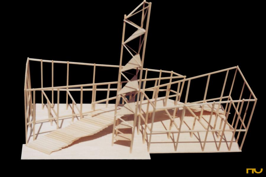 Al novembre de 1924 es va convocar un concurs per a l’elaboració d’un projecte per al pavelló de la Unió Soviètica a la Exposició Internacional d’arts decoratives de Paris de 1925. El concurs va contar amb la participació d’arquitectes de diferents orientacions formals, des d’aquells encara propers al classicisme com I.A Fomin o V. Shchuko, o els que militaven a les files constructivistes com M. Ladovskij, V.F. Krinski,M. Ginsburg, I. Golosov i qui seria el guanyador del concurs, Konstantin Melnikov. Les bases deixaven clar que el projecte devia expressar la ideologia de la URSS com a estat obrer i camperol i la unió fraternal de les diferents nacionalitats sota la bandera de la revolució socialista del 1917. Tanmateix, establien que la construcció havia de ser de fusta i la superfície , d’uns 325 m2, resolta en dos nivells. El nivell inferior havia d’estar dedicat a la varietat ètnico-cultural de les nacions que conformaven la Unió i el nivell superior, a mostrar l’interior de quatre espais significatius: un club obrer, una casa obrera, una sala de lectures, una llar infantil, com una manifestació de la nova societat. Des del començament del seu projecte, Melnikov va seleccionar una sèrie de símbols amb els que realitzaria fins a set muntatges diferents: la esfera del mon, la roda de la història, les cunyes triangulars, la torre, la falç i el martell, les banderes vermelles, o les consignes de “La Internacional”. Aquestes formes van ser progressivament sintetitzades i muntades com peces d’una gran maquinària, de fet, en algun moment es va pretendre incorporar el moviment com a material de la obra en forma de girs o rotacions. Al projecte final, els signes triats apareixen fosos en una composició marcada per un eix que dividia diagonalment una planta de 29,5 x 11m, segregant dos prismes iguals, de forma trapezoïdal (en planta i alçat) i de color vermell. L’escala, primer element dinamitzador pel seu doble efecte diagonal i per la seva pròpia funció circulatòria, estava acompanyada per una coberta composada per una seqüència rítmica de panells de fusta de color vermell entrecreuats. Donat que sorgien de les arestes superiors –inclinades– dels volums laterals, aquests plans s’anaven creuant –com un aleteig vermell– a diferents alçades fins coincidir a la zona central per sobre del replà de l’escala i de l’accés a les exposicions de la planta superior. Aquest joc binari, que tenia un antecedent en un altre projecte del mateix any –el sarcòfag de Lenin– es transformaria en una de les constants del seu treball: la conciliació entre la composició clàssica i el dinamisme constructivista. A una banda de l’escala, i actuant com a contrapunt vertical, s’ubicava una torre d’alçada igual a la longitud del catet llarg dels triangles que conformen la planta. Sense basament, els tres pilars de la torre sorgien del terra cap al cel, arriostrats per uns plans triangulars. Agregant un nou efecte escenogràfic, aquests es succeïen segons intervals i inclinacions variables, en un crescendo que recorda les espirals presents en els croquis del projecte. (F.A.P) |