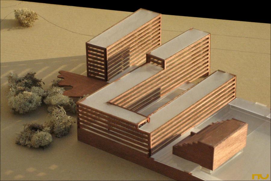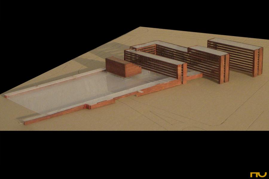 El programa funcional d’aquest extens complex (al voltant de 100.000 m2) s’estructurava en tres fases i grups diferents d’edificis. El primer grup corresponia als més propers a la gran plaça: La Sala del Consell, la Assemblea Municipal i el Secretariat. El segon grup estava constituït pel Departament de Finances i el Comitè d’Edificació i el tercer, pels Departaments d’Urbanisme, Infraestructures i Sanitat. La maqueta que s’exhibeix aquí representa la primera fase; en una segona fase els altres edificis del complex haguessin arribat a tocar els límits dels carrers que emmarquen la mansana de l’emplaçament.