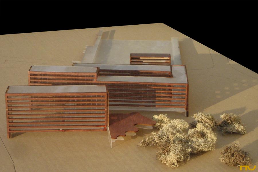 Cal destacar el disseny de la Sala de Consell, ubicada de manera exempta en un extrem de la plaça i resolta com un paral·lelepípede d’obra de maons, material dominant en la resta del conjunt. Amb la seva coberta inclinada cap a est, la Sala del Consell es destaca contra el fons dels edificis administratius, més repetitius i elementals. Aquest disseny recorda la sala construïda a Saynätsälo (1949-52), la ideada per al centre cívic de Marl (1957), o inclús l’auditorium maximum construït a la Universitat Tecnològica de Helsinki (1955-66). La solució inicial per a la il·luminació zenital sembla una variant d’aquest darrer, només que a Göteborg les directrius dels esglaonaments són rectes i no corbes com a Helsinki, on segueixen les corbes de les butaques de l’auditori. Segons indica Göran Schildt, als darrers dibuixos la mida de la sala va ser reduïda i la il·luminació canviada per un sistema de lluernaris cilíndrics. L’altra peça sobresortint era el restaurant, d’alçada equivalent a dues plantes, que recordava les formes lliures de vidre del vas Savoy –que havia dissenyat el 1937- posades en aquest cas al servei d’una relació més natural amb el bosc existent. Una vegada completada la segona fase, el restaurant hagués quedat com una forma orgànica més en el jardí boscós a definir per la resta dels edificis situats de forma perimetral.