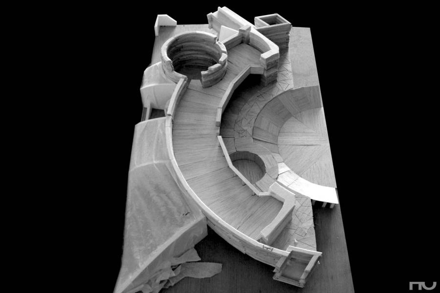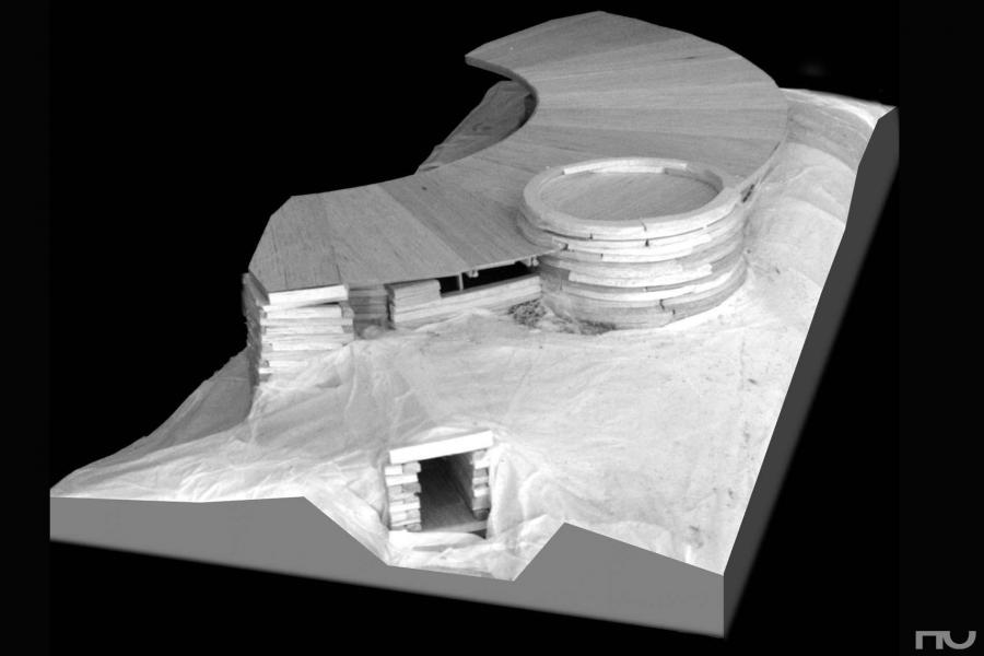 Aquesta casa, situada en un entorn rural de Wisconsin, s'enterra per la part nord i s'obre a un jardà enfonsat descrivint una concavitat envidriada que mira al sud. El terraplè a nord i el gruixut mur de pedra protegeixen a la casa dels vents dominants i li proporcionen calor a l'hivern i fresca a l'estiu. L'accés es realitza pel nord-est mitjançant un túnel que creua el terraplè i que, passant al costat de la paret de la cuina, ens fa arribar al jardà circular. Una vegada allà , accedim a l'interior traspassant qualsevol de les fusteries practicables de fusta, que van des del terra fins a la coberta (uns 4,65 m.) i que col·laboren en el descens de cà rregues. La coberta té una forma accentuada semicircular i crea un voladÃs a sud que deixa entrar els raigs solars a l'hivern i proporciona ombra a l'estiu. El jardÃ, de 7 m. de radi i enfonsat un metre respecte de l'habitatge, actua com a receptacle de l'energia solar. En la planta baixa trobem la sala d'estar, la sala de televisió, el menjador i la cuina, el worksplace wrightià , subtilment diferenciat de la resta per la compressió de l'espai que suposa la presència d'un cilindre de pedra, d'uns 5 m. de dià metre, que conté els dos lavabos, un en planta baixa i l'altre a dalt, i l'escala. La planta superior, la mezzanine , està penjada mitjançant uns tirants de les bigues del sostre, i presenta les habitacions: una principal, a sobre de la cuina, i la possibilitat de crear-ne dos, tres o quatre més. La porció circular del que és l'espai interior té un ample de 5 m, i se situa a un radi de 9 metres. Wright diagrama l'espai dividint la circumferència en 60 parts, obtenint radis cada 6 graus, que ordenen la posició dels eixos de les bigues de la coberta i la mezzanine , les fusteries i la distribució dels diferents elements, xemeneia, estany, cilindre i els envans. No és casual que aquesta casa sigui contemporà nia del Guggenheim, un dels majors assoliments d'aquesta casa és la continuïtat i fluïdesa de l'espai interior, qualitats que el seu exterior no reflecteix d'una manera òbvia: penjat de les bigues del sostre, la mezzanine es penja de les bigues del sostre mitjançant uns tirants metà l·lics que amaga entre els "envans-armari" que separen les habitacions. Després ja n'hi ha prou amb un simple suport al mur nord i unes bones bigues que aportin rigidesa. La galeria de la mezzanine es retira 1 metre del pla de façana, sortint en la planta baixa, i permetent que la calor pugi cap a les habitacions. La visió de les finestres ascendents i el balcó penjant lliurement ens fa percebre l'espai com un tot continu formant un conjunt unitari, total i complet amb el jardà exterior. És molt interessant notar la subtilesa amb què Wright qualifica aquesta heideggeriana porció del món creada a partir d'un sector circular: primer, amb l'hà bil col·locació del cilindre petri crea un dinamisme i una tensió de compressió de l'espai que separa el workspace de la resta de la planta. En el costat esquerre del cilindre es situa la xemeneia, generant l'espai obert de l'estar entorn del foc. Després, amb la presència de l'estany, en la part oest, crea un espai diferenciat de a sala, una TV room o sala de jocs. Tot aquest trà nsit i diferenciació s'efectua de manera suau i contÃnua, a partir dels elements naturals i sense revestiments de cap tipus. (F.A.P.) |