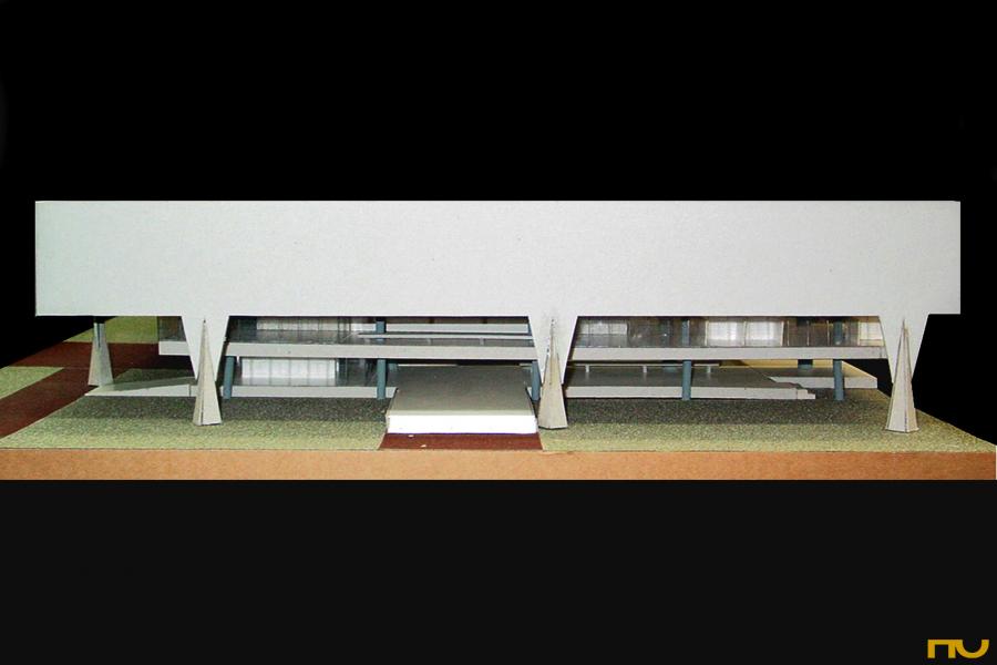 La facultat d'Arquitectura i Urbanisme de la Universitat de Sao Paulo va ser fundada entre 1948 i 1949. El curs va ocupar fins a 1969 un casalot art-nouveau projectat per l'arquitecte C. Eckman cap a 1900 i donat a l'USP per una famÃlia tradicional paulistana. En 1961 Artigues i Carlos Cascaldi inicien el projecte del nou edifici per al Campus de la Universitat a l'altre costat del Rio Pinheiros, a la Zona Oest de la ciutat de Sao Paulo. L'edifici va ser inaugurat el 1969, paradoxalment el mateix any en què va ser expulsat de la Universitat per un govern militar. L'edifici se situa en un terreny entre dos carrers de la Ciutat Università ria i està definit per un embolcall rectangular de 66 m x 110 m, construït en formigó armat, que té totes les seves funcions distribuïdes en vuit nivells intercalats entre si, dels quals dos van ser soterrats respecte a la cota d'accés. La seva coberta està formada per un entramat de bigues ortogonals tancada exclusivament per un impluvium , l'única forma d'il·luminació natural de la planta superior. Igualment, la llum arriba a les altres plantes per mitjà del generós atrium central al voltant del qual s'organitza l'edifici. Els murs / bigues perimetrals que delimiten l'edifici estan articulats sobre cinc pilars en el costat llarg i dos en el costat curt. De forma piramidal, girats 45º respecte a tot l'edifici, es fonen amb el pla triangular que baixa des del mur a mesura que van guanyant alçada. Sota la coberta, l'estructura està marcada per un entramat de 36 pilars distribuïts segons dos mòduls d'11 m x 11 m i 11 m x 22 m. L'articulació espacial entre els vuit nivells diferents al voltant del pati central es resol per mitjà de rampes, ubicades en el mateix eix format per un dels mòduls i que al seu torn delimiten l'accés principal a l'edifici, marcant la continuïtat entre el paviment exterior i l'interior a l'embolcall. Aquesta continuïtat es reafirma en la significativa absència de murs i portes, només utilitzats en casos necessaris com en aules teòriques, serveis, laboratoris o en els departaments. Amb aquesta actitud Artigas va buscar entrellaçar el projecte arquitectònic amb el projecte pedagògic del curs, concebut també per ell entre 1957 i 1962, pretenent disminuir l'allunyament entre les assignatures expressat en la divisió vertical dels departaments per mitjà d' ateliers integrats fÃsicament en l'última planta, fent alhora que la fruïció espacial, visual i sonora impliqués un necessari respecte entre els usuaris i un ús més democrà tic de l'espai. El propi Artigas el 1984 va explicitar tals proposicions en un concurs per a professor titular del departament de Projectes: pensei que este espaço fosse a expressão da democracia. [...] que não teriam que ser controladas por ninguém, e que eu não podia por uma porta de entrada por que era para mim um crime. El projecte de l'edifici per a la Facultat d'Arquitetura i Urbanisme coincideix amb un perÃode en què Artigas va projectar un nombre significatiu d'escoles per a la provÃncia de Sao Paulo en un programa de construcció instaurat pel governador Carvalho Pinto a partir de 1958. En aquests projectes ja es prefiguren elements i formes d'organització espacial comunes entre si, però que essencialment poden ser identificats en els seus projectes residencials. En la FAU-USP trobem la dramatització d'aquests elements, determinat una doble relació amb els seus habitatges. La universitat era entesa com una prolongació de la casa, i aquesta com a lloc essencial de la formació. (M.C.) |