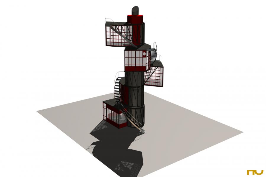 El 1924 es va convocar un concurs per la construcció d’una torre pel Leningrádskaya Pravda (La veritat de Leningrad–l’actual San Petersburg) a la capital de la Unió Soviètica. L’espai disponible era mínim: un quadrat de 6 x 6m a la plaça Strásnaya (Strasnoy) –avui la plaça Pushkin– ubicada sobre la traça del Bulevard Strasnoy, que limitava el segon i tercer anell de Moscou, i prop d’un dels carrers radials que connectava amb el kremlin. La privilegiada ubicació de la torre es similar a la triada per El Lissitsky per als seus gratacels horitzontals i estructures commemoratives i revela la intenció propagandística d’aquesta ocupació de les principals places de la ciutat amb manifestacions de l’art revolucionari. Per tant, no sorprèn el llistat d’arquitectes que es presenten al concurs: els germans Vesnin, Golosov, Ginzburg i el propi Melnikov, tots ells membres destacats de les files constructivistes. Utilitzant paraules del crític formalista Victor Sklovsky, s’haurà de veure, “la dissimilitud d’allò que és similar” per destacar els valors d’aquest projecte envers els altres, tots ells disposats a expressar els símbols revolucionaris, el ritme nou de la ciutat, el clamor modernitzador. El projecte de Melnikov partia d’un nucli cilíndric de formigó que allotjava una caixa d’escales de cargol i un ascensor. Entorn a aquest nucli, rotaven quatre mòduls d’acer i vidre, suspesos en voladís mitjançant unes guies i perfils metàl•lics, una idea que repetirà en els croquis realitzats per al concurs del Pavelló de Paris de 1925. La seva proposta semblava barrejar les idees presents també a la proposta dels germans Vesnin– guanyadors del concurs– i de Golosov, com la incorporació del moviment –el temps– com un material nou per la arquitectura, els efectes de la transparència, o el formigó armat. Però mentre els Vesnin promovien la visió del moviment vertical de l’ascensor o la del cartell a la coronació de la torre, Melnikov semblava més interessat en cercar la major varietat de posicions d’aquests mòduls mòbils i conseqüentment, la infinita riquesa d’efectes i de llum en tot l’edifici. I si bé utilitzava una estructura de formigó com Golosov, mentre que aquest modelava el material forçant-lo a adoptar complicades formes estrellades o cilíndriques, Melnikov ho interpretava com un nucli encastat en el terreny per compensar l’esforç al que l’estructura seria sotmesa per la rotació dels forjats. (F.A.P.) |