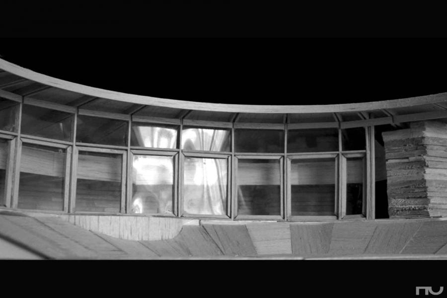 Aquesta casa, situada en un entorn rural de Wisconsin, s'enterra per la part nord i s'obre a un jardà enfonsat descrivint una concavitat envidriada que mira al sud. El terraplè a nord i el gruixut mur de pedra protegeixen a la casa dels vents dominants i li proporcionen calor a l'hivern i fresca a l'estiu. L'accés es realitza pel nord-est mitjançant un túnel que creua el terraplè i que, passant al costat de la paret de la cuina, ens fa arribar al jardà circular. Una vegada allà , accedim a l'interior traspassant qualsevol de les fusteries practicables de fusta, que van des del terra fins a la coberta (uns 4,65 m.) i que col·laboren en el descens de cà rregues. La coberta té una forma accentuada semicircular i crea un voladÃs a sud que deixa entrar els raigs solars a l'hivern i proporciona ombra a l'estiu. El jardÃ, de 7 m. de radi i enfonsat un metre respecte de l'habitatge, actua com a receptacle de l'energia solar. En la planta baixa trobem la sala d'estar, la sala de televisió, el menjador i la cuina, el worksplace wrightià , subtilment diferenciat de la resta per la compressió de l'espai que suposa la presència d'un cilindre de pedra, d'uns 5 m. de dià metre, que conté els dos lavabos, un en planta baixa i l'altre a dalt, i l'escala. La planta superior, la mezzanine , està penjada mitjançant uns tirants de les bigues del sostre, i presenta les habitacions: una principal, a sobre de la cuina, i la possibilitat de crear-ne dos, tres o quatre més. La porció circular del que és l'espai interior té un ample de 5 m, i se situa a un radi de 9 metres. Wright diagrama l'espai dividint la circumferència en 60 parts, obtenint radis cada 6 graus, que ordenen la posició dels eixos de les bigues de la coberta i la mezzanine , les fusteries i la distribució dels diferents elements, xemeneia, estany, cilindre i els envans. No és casual que aquesta casa sigui contemporà nia del Guggenheim, un dels majors assoliments d'aquesta casa és la continuïtat i fluïdesa de l'espai interior, qualitats que el seu exterior no reflecteix d'una manera òbvia: penjat de les bigues del sostre, la mezzanine es penja de les bigues del sostre mitjançant uns tirants metà l·lics que amaga entre els "envans-armari" que separen les habitacions. Després ja n'hi ha prou amb un simple suport al mur nord i unes bones bigues que aportin rigidesa. La galeria de la mezzanine es retira 1 metre del pla de façana, sortint en la planta baixa, i permetent que la calor pugi cap a les habitacions. La visió de les finestres ascendents i el balcó penjant lliurement ens fa percebre l'espai com un tot continu formant un conjunt unitari, total i complet amb el jardà exterior. És molt interessant notar la subtilesa amb què Wright qualifica aquesta heideggeriana porció del món creada a partir d'un sector circular: primer, amb l'hà bil col·locació del cilindre petri crea un dinamisme i una tensió de compressió de l'espai que separa el workspace de la resta de la planta. En el costat esquerre del cilindre es situa la xemeneia, generant l'espai obert de l'estar entorn del foc. Després, amb la presència de l'estany, en la part oest, crea un espai diferenciat de a sala, una TV room o sala de jocs. Tot aquest trà nsit i diferenciació s'efectua de manera suau i contÃnua, a partir dels elements naturals i sense revestiments de cap tipus. (F.A.P.) |