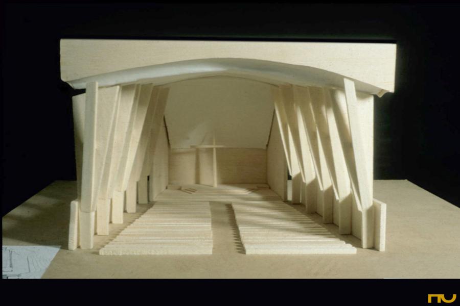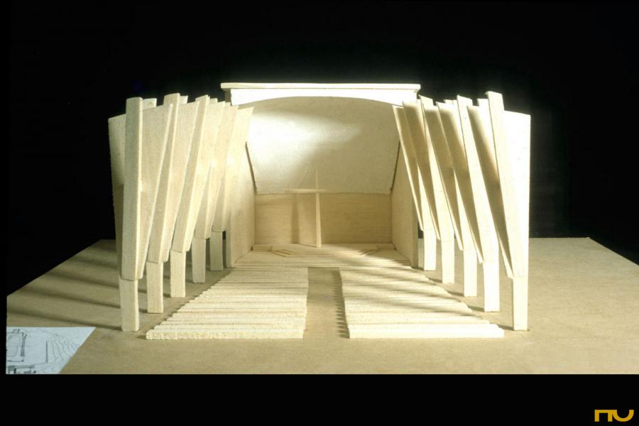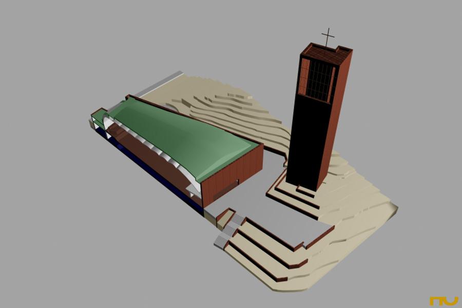 El març de 1950, Alvar Aalto, va guanyar el primer premi del concurs per a l'església i centre parroquial de Lahti amb el projecte "sinus". Aquesta església, la primera projectada per Aalto després de la Segona Guerra Mundial havia de ser la més important per a la ciutat de Lahti i es col·locava en un encreuament d'avingudes del centre. El projecte constava de tres parts: l'església i el campanar d'una banda i el centre parroquial, per l'altre, a diferents altures i connectats a través d'un pont per als vianants constituint-se en una espècie d'acròpolis de la ciutat, Tanmateix, aquest primer disseny no va ser dut a terme per qüestions econòmiques i d'emplaçament, construint-se'n una altra en un emplaçament diferent, a finals de la dècada dels setanta, seguint un altre projecte del mateix Aalto (1970). El 1951, Alvar Aalto va utilitzar una variant de la planta i la secció de l'església de Lahti per al concurs de les dependències parroquials i vicaria de Seinäjoki. Aquests dos projectes marquen la sèrie d'investigacions formals sobre la figura trapezoïdal amb la idea de la composició per parts mitjançant l'addició d'espais i la descomposició minuciosa de la figura trapezoïdal. Aixà projecta les esglésies de Seinäjoki (1951), la de Las tres creus a Vuoksenniska (1956), la del Centre parroquial de Wolfsburg, (1959), la de Riola a Bolonya, (1966), la del Centre Parroquial en Zúrich-Altstetten, Suïssa (1967), la del centre parroquial de Detmerode (1963-68) i la corresponent al segon projecte de Lahti(1970) on només manté del primer la forma trapezoïdal en planta i secció. Al marge de les qüestions formals, Aalto deixa clar a Lahti que ja no solament concep l'església com un monument per rebre als fidels sinó que ho entén amb tota la seva varietat plurifuncional. El projecte consta de tres parts : campanar , església i centre parroquial, i se situa a sobre d'un turó . El campanar, col·locat separat cap a l'oest de l'església, és de planta quadrada , té elements verticals en façana i la part superior és envidriada. La posició que ocupa i els seus gairebé 50 metres d'altura fan que es converteixi en un monument i sÃmbol de tota la ciutat, coronat per un enorme rellotge. El material predominant a les façanes és el maó, material amb què Aalto comença a treballar a partir de l'Ajuntament de Saynätsalo (1948). La façana oest sobre la qual es desplega un conjunt escultural és la principal de l'església. Les façanes longitudinals estan recobertes per una segona pell formada per una espècie de mur cortina de vidre. El centre parroquial en forma "d'U" amb dues sales grans i una petita plaça davant l'entrada se situa en l'altre costat del carrer. Des de l'església s'hi pot accedir mitjançant una passarel·la elevada. La planta de l'església té forma de falca i respon a un esquema bastant simètric -en comparació amb les esglésies que Aalto realitzaria després- estrenyent-se cap a l'altar ubicat cap a aquest i paral·lelament, la secció disminueix d'altura en aquesta zona. Es tracta d'una nau llarga d'uns 48 m de longitud -una mesura gairebé igual a la del campanar- i entre 10 i 12 m d'altura segons el punt. L'estructura és de pilars que es van obrint en tres branques cap a dalt, per deixar entrar la llum natural a través de la façana vidrada; aixà mateix el sostre és còncau a la secció transversal, mentre que longitudinalment està format per una sèrie de concavitats que se succeeixen fins a l'altar. Ambdós temes seran represos a Seinajöki. (F.A.P.) |