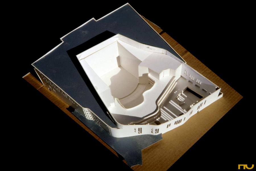 anfiteatre, doble pell, forma corba, marbre, polaritat, teatre,