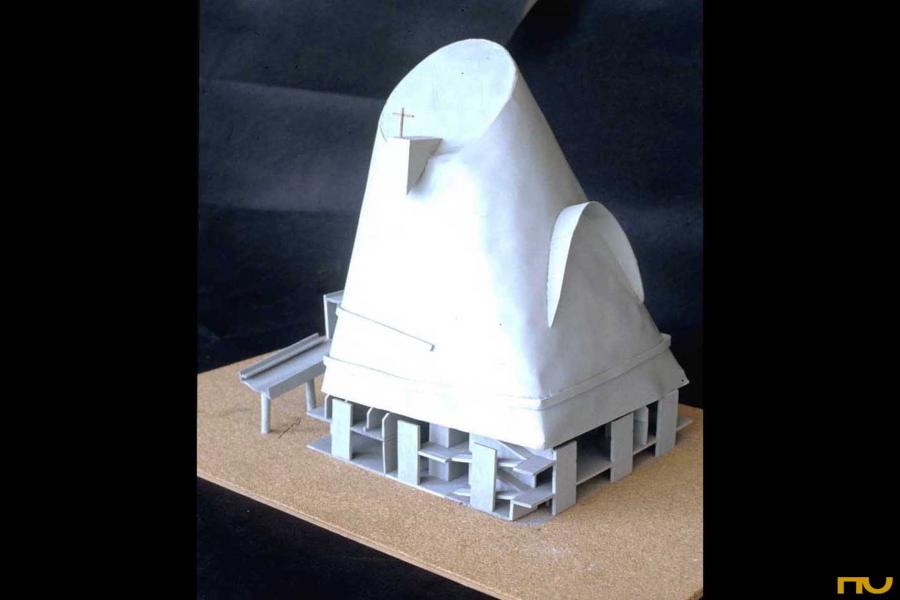 religious building, concave form, concrete, zenith light, promenade, ramp, symbolic,