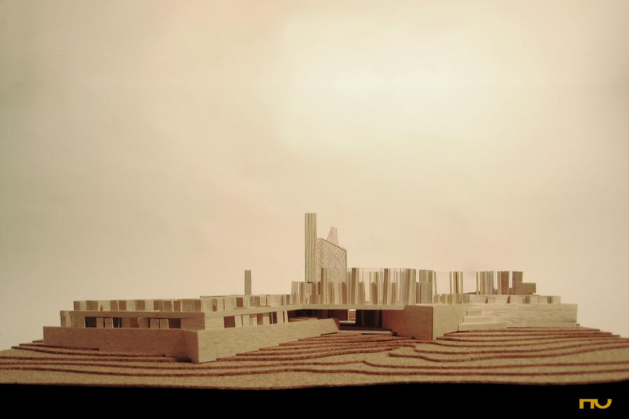 bloc tèxtil, diagonal, edifici hoteler, ornament, terrassa, terreny inclinat, triangle,