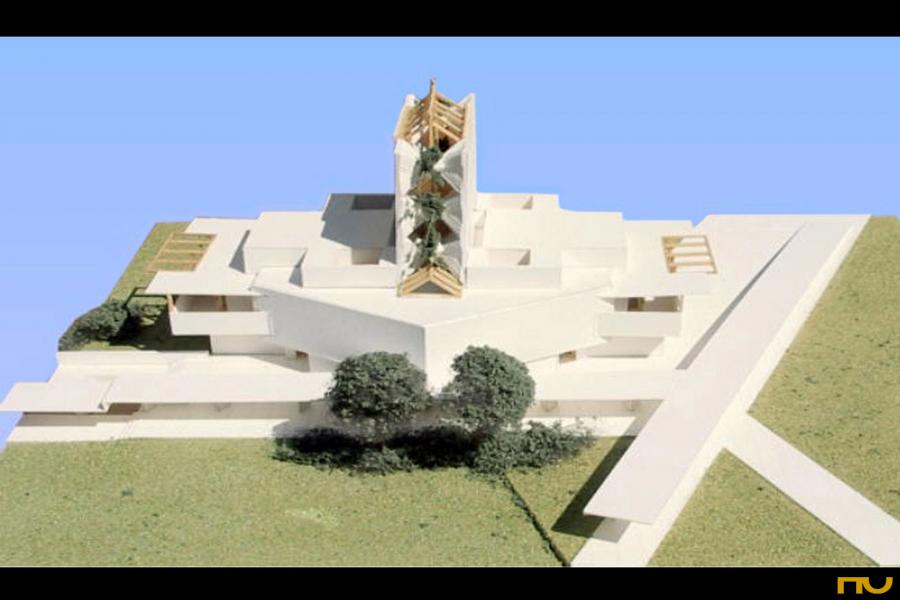 campanario, centro, diagonal, edificio religioso, hexágono, luz cenital, verticalidad,