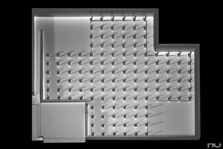 En una mirada rà pida, aquest exercici se situa a cavall entre dos projectes molt coneguts de Kahn: els Banys de Trenton (1955) i la Biblioteca Exeter (1966) encara que podem trobar més exemples en aquest deceni, com el Martin Research Institute (1955-7). Més enllà d’aquests vincles basats en l’ús del quadrat, la puresa de la forma i la idea de monumentalitat, en el pla funcional d’aquest projecte prefigura solucions d’organització de la planta i, en especial, de la secció, com és el cas dels dobles espais situats a la perifèria.
