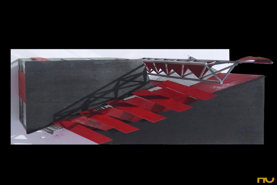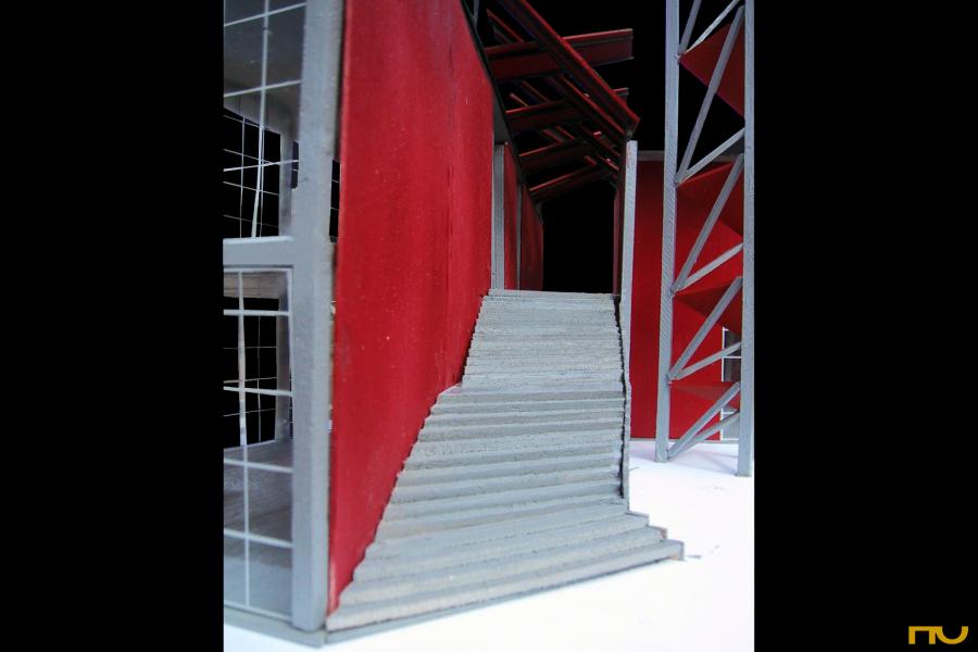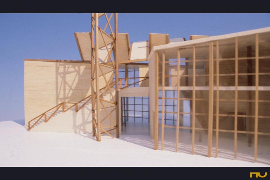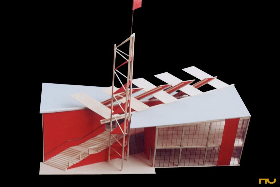 Al novembre de 1924 es va convocar un concurs per a l’elaboració d’un projecte per al pavelló de la Unió Soviètica a la Exposició Internacional d’arts decoratives de Paris de 1925. El concurs va contar amb la participació d’arquitectes de diferents orientacions formals, des d’aquells encara propers al classicisme com I.A Fomin o V. Shchuko, o els que militaven a les files constructivistes com M. Ladovskij, V.F. Krinski,M. Ginsburg, I. Golosov i qui seria el guanyador del concurs, Konstantin Melnikov. Les bases deixaven clar que el projecte devia expressar la ideologia de la URSS com a estat obrer i camperol i la unió fraternal de les diferents nacionalitats sota la bandera de la revolució socialista del 1917. Tanmateix, establien que la construcció havia de ser de fusta i la superfície , d’uns 325 m2, resolta en dos nivells. El nivell inferior havia d’estar dedicat a la varietat ètnico-cultural de les nacions que conformaven la Unió i el nivell superior, a mostrar l’interior de quatre espais significatius: un club obrer, una casa obrera, una sala de lectures, una llar infantil, com una manifestació de la nova societat. Des del començament del seu projecte, Melnikov va seleccionar una sèrie de símbols amb els que realitzaria fins a set muntatges diferents: la esfera del mon, la roda de la història, les cunyes triangulars, la torre, la falç i el martell, les banderes vermelles, o les consignes de “La Internacional”. Aquestes formes van ser progressivament sintetitzades i muntades com peces d’una gran maquinària, de fet, en algun moment es va pretendre incorporar el moviment com a material de la obra en forma de girs o rotacions. Al projecte final, els signes triats apareixen fosos en una composició marcada per un eix que dividia diagonalment una planta de 29,5 x 11m, segregant dos prismes iguals, de forma trapezoïdal (en planta i alçat) i de color vermell. L’escala, primer element dinamitzador pel seu doble efecte diagonal i per la seva pròpia funció circulatòria, estava acompanyada per una coberta composada per una seqüència rítmica de panells de fusta de color vermell entrecreuats. Donat que sorgien de les arestes superiors –inclinades– dels volums laterals, aquests plans s’anaven creuant –com un aleteig vermell– a diferents alçades fins coincidir a la zona central per sobre del replà de l’escala i de l’accés a les exposicions de la planta superior. Aquest joc binari, que tenia un antecedent en un altre projecte del mateix any –el sarcòfag de Lenin– es transformaria en una de les constants del seu treball: la conciliació entre la composició clàssica i el dinamisme constructivista. A una banda de l’escala, i actuant com a contrapunt vertical, s’ubicava una torre d’alçada igual a la longitud del catet llarg dels triangles que conformen la planta. Sense basament, els tres pilars de la torre sorgien del terra cap al cel, arriostrats per uns plans triangulars. Agregant un nou efecte escenogràfic, aquests es succeïen segons intervals i inclinacions variables, en un crescendo que recorda les espirals presents en els croquis del projecte. (F.A.P) |