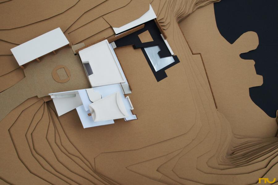 aigua, asimetría, habitatge, jardí, terreny inclinat, trapezi,
