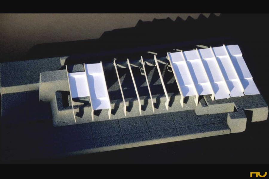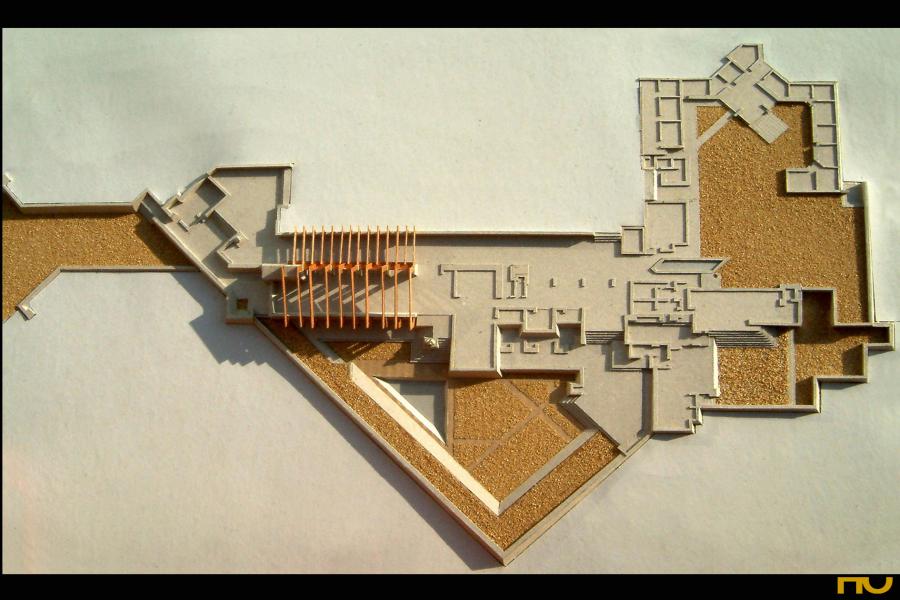 En 1937 Wright establece su cuartel general de invierno en un solitario paraje del desierto de Arizona al pie de las Mc Dowell Mountains, acompañado por Olgivanna Milanoff y treinta discÃpulos, Como en la experiencia de Taliesin East, este edificio debÃa cumplir con los requisitos necesarios para alojar a los aprendices, al maestro y familia, y disponer de una gran sala de dibujo y taller. El nuevo estudio-refugio de aprendices eremitas traduce las empalizadas del ensayo previo del Ocatilla Camp (192) en muros de estratos de piedra del lugar -"mamposterÃa del desierto", según Wright- que, a modo de ruinas arcaicas se cubren de efÃmeras lonas, pérgolas y voladizos de madera, con la finalidad de crear sombras y espacios de vida y trabajo. Desde los primeros croquis se ve la intención de ocupar el espacio, creando una serie de terrazas relacionadas sobre las que se erigen los distintos bloques de edificación, utilizando el material hallado en el lugar. La primera pieza en aparecer fue la gran sala de dibujo con la cocina y área de servicio en un extremo, abierta hacia la pérgola situada a norte y con vistas hacia la terraza y estanque triangular al sur. Hasta la construcción del resto de los edificios, la sala de dibujo fue lugar de trabajo, auditorio y sala de reuniones. Completando el primer enclave se construyeron la Oficina y el Garden Room , una especie de gran salón orientado a este para la familia Wright, un grupo de habitaciones para los aprendices con un patio propio y un pequeño teatro bautizado en los planos con los vocablos indios Hogan o Kiva. A partir de allÃ, como un organismo vivo, el edifico experimenta constantes cambios. Hacia 1948, tras una pequeña ampliación de este edificio, Wright construye un nuevo espacio teatral hacia el norte y reorganizando el resto; en invierno de 1956-7 se agregan nuevos edificios, como el Pabellón de la Música la ampliación de la tienda; en 1959 se modifica el camino de acceso. Como en Ocatilla o en St. Mark's Tower, aparecen en Taliesin West soluciones de plantas basadas en trazados diagonales a 30, 45 y 60 grados, y secciones basadas en el triángulo de relaciones 1:2. "El desierto -dice Wright- aborrece la lÃnea recta y dura" y utiliza el ejemplo de los cactus -del sahuaro de Ocatilla y el hotel San Marcos in the desert- y el de las plantas del desierto para ilustrar el uso de la "lÃnea punteada" que utiliza para suavizar los voladizos. Con la excepción de las lonas claras de las cubiertas -en continuo cambio y adaptación- los edificios se tiñen de los tonos rojizos, lavanda o grises presentes en las piedras y en la vegetación del lugar. Primitivismo, integración, organicismo, horizontalidad, tensión centro-periferia, multiplicación de ejes visuales basados en la activa utilización de la diagonal -en relación dialéctica con las lógicas geométricas impuestas a través del uso de tramas base- serán las principales caracterÃsticas de un Wright cada vez más refinado y complejo, capaz de resolver un volumen de trabajo cada vez más creciente una vez superados los efectos de la crisis del 29. (F.A.P.) |
