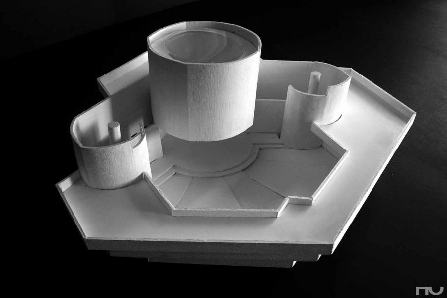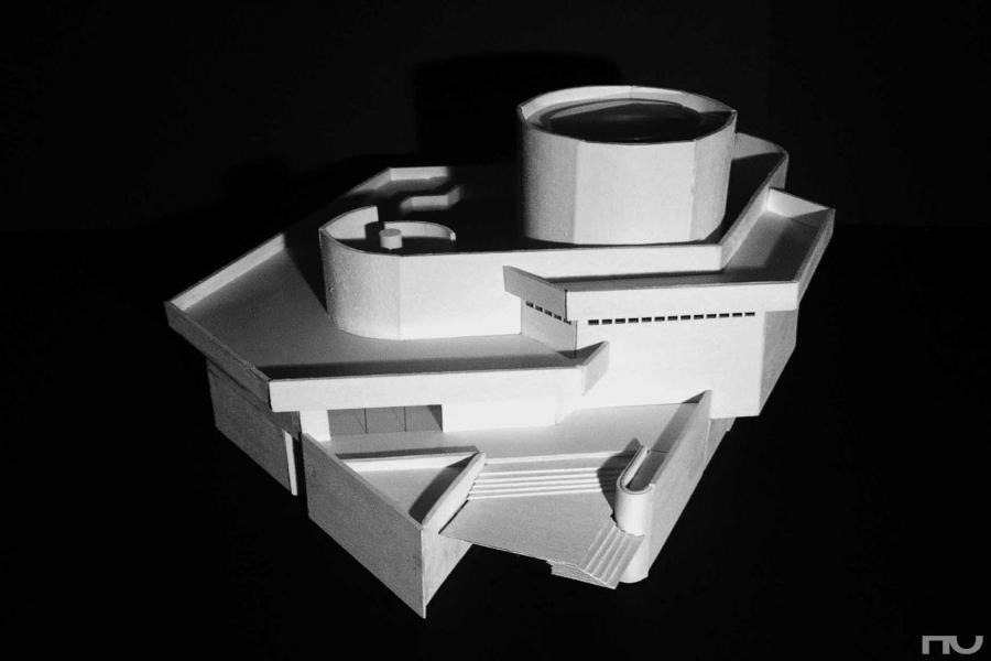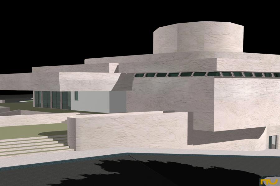 El teatro de Dallas, cuyo nombre rinde homenaje a la actriz Kalita Humphreys, fallecida trágicamente en 1954, se concibe como una pequeña sala de espectáculos, con un aforo de 500 personas, que podría ser utilizado también como escuela de arte dramático. La caja circular del escenario es el foco del proyecto que, además de circunferencias, utiliza una malla básica de líneas a 30 y 60 grados, recurso que aparece en la obra de Wright a fines de la década del 20. En el interior de la caja, un escenario circular de unos 13 m. de diámetro y dos escenarios laterales más pequeños confieren flexibilidad al movimiento de los actores. Los cilindros que se divisan desde el exterior corresponden a las dos cajas laterales del escenario que contienen las rampas que conducen a las salas de ensayo del piso inferior. Allí se sitúan aulas, salas de ensayo y talleres para preparar escenografías. El escenario circular contiene en sí mismo una plataforma giratoria de 10 m. aproximadamente, dividida en tercios, lo cual permite mostrar un sector al escenario, esconder otro y preparar el tercero para la escena siguiente. Desde el lado izquierdo de la escena se inicia el gesto continuo de una pared que se va plegando según la trama romboidal impuesta, envolviendo el patio de butacas, distribuidas simétricamente en once filas y tres islas para acabar en el foyer y la zona de acceso. Al margen de los precedentes mencionados, el Teatro Kalita Humphreys recuerda a los proyectos realizados de la Capilla Anne Pfeiffer del Florida Southern College, y al Museo Guggenheim de Nueva York, tanto por su lenguaje -formas monolíticas y cerradas al exterior, ensanchamiento de las partes superiores, revoco liso y color arena- como por la sacralización del foco de la actividad principal, a la cual el resto de actividades quedan formalmente subordinadas. (F.A.P.)