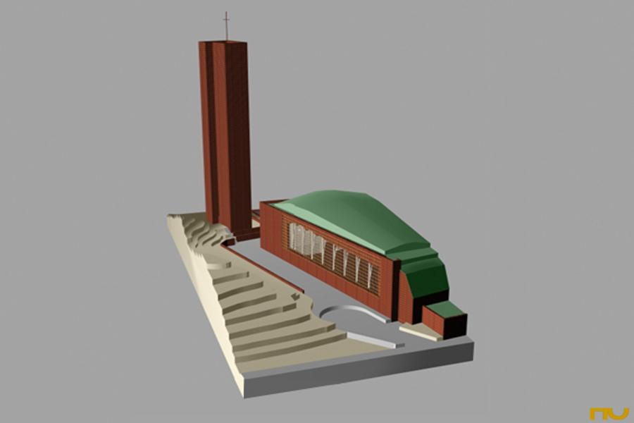 El març de 1950, Alvar Aalto, va guanyar el primer premi del concurs per a l'església i centre parroquial de Lahti amb el projecte "sinus". Aquesta església, la primera projectada per Aalto després de la Segona Guerra Mundial havia de ser la més important per a la ciutat de Lahti i es col·locava en un encreuament d'avingudes del centre. El projecte constava de tres parts: l'església i el campanar d'una banda i el centre parroquial, per l'altre, a diferents altures i connectats a través d'un pont per als vianants constituint-se en una espècie d'acròpolis de la ciutat, Tanmateix, aquest primer disseny no va ser dut a terme per qüestions econòmiques i d'emplaçament, construint-se'n una altra en un emplaçament diferent, a finals de la dècada dels setanta, seguint un altre projecte del mateix Aalto (1970). El 1951, Alvar Aalto va utilitzar una variant de la planta i la secció de l'església de Lahti per al concurs de les dependències parroquials i vicaria de Seinäjoki. Aquests dos projectes marquen la sèrie d'investigacions formals sobre la figura trapezoïdal amb la idea de la composició per parts mitjançant l'addició d'espais i la descomposició minuciosa de la figura trapezoïdal. Aixà projecta les esglésies de Seinäjoki (1951), la de Las tres creus a Vuoksenniska (1956), la del Centre parroquial de Wolfsburg, (1959), la de Riola a Bolonya, (1966), la del Centre Parroquial en Zúrich-Altstetten, Suïssa (1967), la del centre parroquial de Detmerode (1963-68) i la corresponent al segon projecte de Lahti(1970) on només manté del primer la forma trapezoïdal en planta i secció. Al marge de les qüestions formals, Aalto deixa clar a Lahti que ja no solament concep l'església com un monument per rebre als fidels sinó que ho entén amb tota la seva varietat plurifuncional. El projecte consta de tres parts : campanar , església i centre parroquial, i se situa a sobre d'un turó . El campanar, col·locat separat cap a l'oest de l'església, és de planta quadrada , té elements verticals en façana i la part superior és envidriada. La posició que ocupa i els seus gairebé 50 metres d'altura fan que es converteixi en un monument i sÃmbol de tota la ciutat, coronat per un enorme rellotge. El material predominant a les façanes és el maó, material amb què Aalto comença a treballar a partir de l'Ajuntament de Saynätsalo (1948). La façana oest sobre la qual es desplega un conjunt escultural és la principal de l'església. Les façanes longitudinals estan recobertes per una segona pell formada per una espècie de mur cortina de vidre. El centre parroquial en forma "d'U" amb dues sales grans i una petita plaça davant l'entrada se situa en l'altre costat del carrer. Des de l'església s'hi pot accedir mitjançant una passarel·la elevada. La planta de l'església té forma de falca i respon a un esquema bastant simètric -en comparació amb les esglésies que Aalto realitzaria després- estrenyent-se cap a l'altar ubicat cap a aquest i paral·lelament, la secció disminueix d'altura en aquesta zona. Es tracta d'una nau llarga d'uns 48 m de longitud -una mesura gairebé igual a la del campanar- i entre 10 i 12 m d'altura segons el punt. L'estructura és de pilars que es van obrint en tres branques cap a dalt, per deixar entrar la llum natural a través de la façana vidrada; aixà mateix el sostre és còncau a la secció transversal, mentre que longitudinalment està format per una sèrie de concavitats que se succeeixen fins a l'altar. Ambdós temes seran represos a Seinajöki. (F.A.P.) |