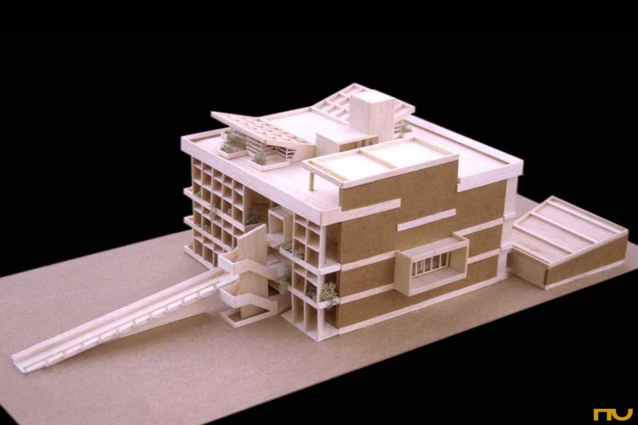 El programa funcional per a aquest edifici mai no va ser gaire precís, pretenia ser un club selecte per fer reunions de negocis, recepcions i conferències d'un dels grups d'industrials tèxtils de la ciutat d'Ahmedabad, per als quals Le Corbusier va projectar altres obres com les cases Chimanbai, Huttesing, Shodan i Sharabai, o el Museu de la ciutat. L'edifici es situa sobre el costat occidental del riu Sabarmati, formant part de l'extensió moderna i burgesa d'Ahmedabad, des de la que pot contemplar-se la ciutat antiga i la tasca quotidiana dels artesans que rentaven i posaven a assecar el cotó sobre la sorra. L'edifici reflecteix l'organització social de l'Índia, separa i jerarquitza clarament els accessos produint-se el principal a través d'una rampa monumental que divideix l'edifici en dos estrats. La planta baixa està destinada als treballadors que en cap moment es barregen amb els usuaris de les parts superiors. Aquestes queden reservades per als alts càrrecs de l'associació i per a la casta a qui aquests pertanyen. Le Corbusier presenta una planta lliure de 27 x 27 m (incloent brise-soleil) en la qual els elements interiors s'ordenen dins d'una trama ortogonal de pilotis, en la qual pot constatar-se l'ús del Modulor. Es tracta d'una matriu irregular, formada per llums entre pilotis de 7,44 i de 6,35 m. La llum major comprèn el nucli central d'ascensors i, a partir d'aquesta, en un costat i a l'altre, a 6.35 m es col·loquen les següents crugies de pilars. La posició dels brise-soleils tampoc no és casual: a 7,44 m respecte de la crugia central. El brise-soleil que dóna a l’Est és perpendicular a la façana i en té 1,10 m. de profunditat mentre que el que dóna a l'Oest es gira a 45 graus i en té 2,26 de profunditat. Tant els pilotis com els forjats, escales, rampa i els dos brise-soleil estan construïts en formigó armat, mentre que els murs de tancament són de maó vist. La resta d'envans divisoris, són revocats i pintat o es revesteixen de fusta, com en el cas de l'auditori. El brise-soleil unificador, la rampa com a recorregut cerimonial, l'escala sortint com un sentinella cuidant-se de la gran porta d'accés, recorden els vells suggeriments d'”una maison, un palais". Però com en d'altres obres de l'època, la rampa no és mera invitació a la promenade architectural sinó una forma que funciona visualment a diverses escales: amb el volum principal de l'edifici, amb els rectangles i diagonals de la façana, amb els plans corbs de baixa alçada dels serveis i el bar de la planta segona o amb el gran pla corb inclinat de l'auditori. A l'auditori -culminació del recorregut- s'eliminen les interrupcions i l'espai explota a través de dos mecanismes fonamentals: el sostre corb de la coberta, corbat cap a baix per expressar la pressió de l'aigua i el dispositiu òptic que ens fa percebre les parets com un pla en espiral ascendent. Tant les proporcions dels plafons com la inclinació que les juntes principals tenen amb el terra es regulen segons proporcions àuries. (FA) |