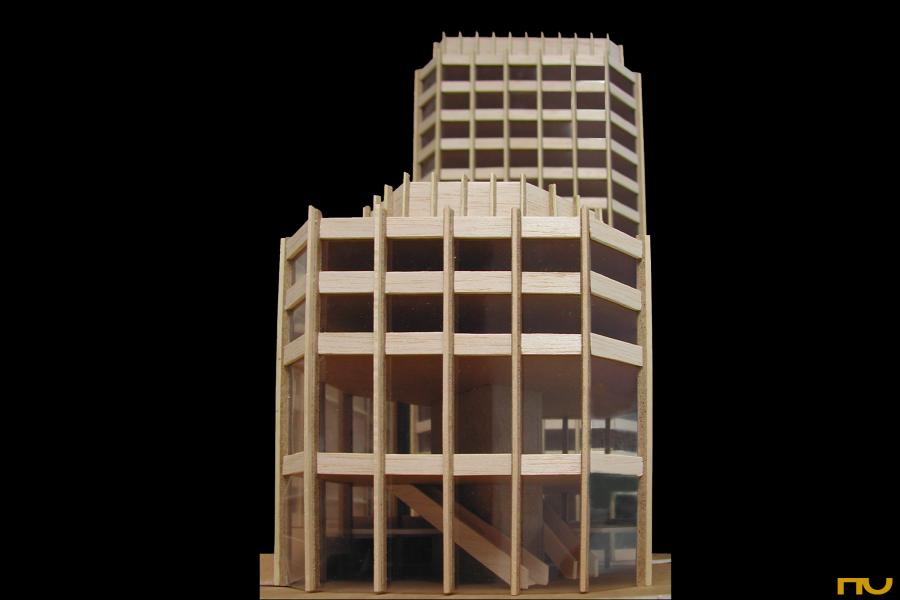 agrupació, articulació, edifici d'oficines, formigó, recinte, rigor, fusió estructura-tancament, modulació,