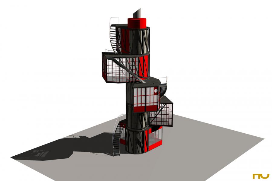 El 1924 es va convocar un concurs per la construcció d’una torre pel Leningrádskaya Pravda (La veritat de Leningrad–l’actual San Petersburg) a la capital de la Unió Soviètica. L’espai disponible era mínim: un quadrat de 6 x 6m a la plaça Strásnaya (Strasnoy) –avui la plaça Pushkin– ubicada sobre la traça del Bulevard Strasnoy, que limitava el segon i tercer anell de Moscou, i prop d’un dels carrers radials que connectava amb el kremlin. La privilegiada ubicació de la torre es similar a la triada per El Lissitsky per als seus gratacels horitzontals i estructures commemoratives i revela la intenció propagandística d’aquesta ocupació de les principals places de la ciutat amb manifestacions de l’art revolucionari. Per tant, no sorprèn el llistat d’arquitectes que es presenten al concurs: els germans Vesnin, Golosov, Ginzburg i el propi Melnikov, tots ells membres destacats de les files constructivistes. Utilitzant paraules del crític formalista Victor Sklovsky, s’haurà de veure, “la dissimilitud d’allò que és similar” per destacar els valors d’aquest projecte envers els altres, tots ells disposats a expressar els símbols revolucionaris, el ritme nou de la ciutat, el clamor modernitzador. El projecte de Melnikov partia d’un nucli cilíndric de formigó que allotjava una caixa d’escales de cargol i un ascensor. Entorn a aquest nucli, rotaven quatre mòduls d’acer i vidre, suspesos en voladís mitjançant unes guies i perfils metàl•lics, una idea que repetirà en els croquis realitzats per al concurs del Pavelló de Paris de 1925. La seva proposta semblava barrejar les idees presents també a la proposta dels germans Vesnin– guanyadors del concurs– i de Golosov, com la incorporació del moviment –el temps– com un material nou per la arquitectura, els efectes de la transparència, o el formigó armat. Però mentre els Vesnin promovien la visió del moviment vertical de l’ascensor o la del cartell a la coronació de la torre, Melnikov semblava més interessat en cercar la major varietat de posicions d’aquests mòduls mòbils i conseqüentment, la infinita riquesa d’efectes i de llum en tot l’edifici. I si bé utilitzava una estructura de formigó com Golosov, mentre que aquest modelava el material forçant-lo a adoptar complicades formes estrellades o cilíndriques, Melnikov ho interpretava com un nucli encastat en el terreny per compensar l’esforç al que l’estructura seria sotmesa per la rotació dels forjats. (F.A.P.) |