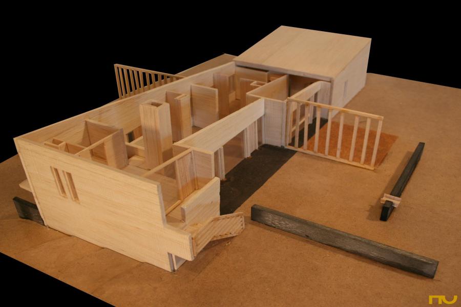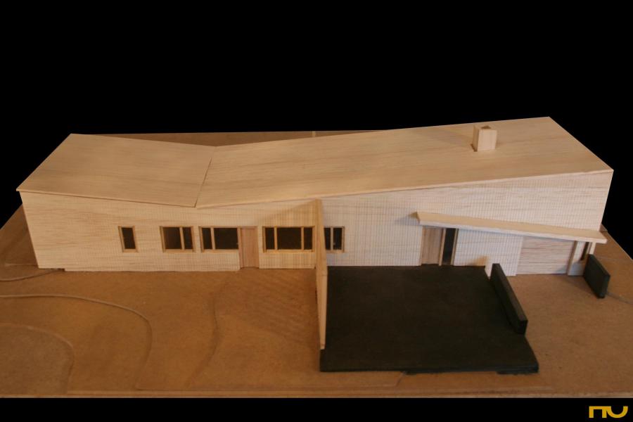 La organización del programa —en línea— en una planta alargada seguía una lógica ya comprobada en proyectos como la Casa Hagerty, las cottages Chamberlain y en Cape Cod. Sin embargo, a diferencia de éstas, la casa para el MoMa se apoyaba completamente sobre el suelo y la terraza/mirador fue sustituida por el prolongamiento del pavimento exterior, justificando el uso de planos y muros exteriores. Por lo tanto, podemos decir que Breuer yuxtapuso aspectos presentes en los dos tipos de casas que había empezado a desarrollar en aquella década: la casa binuclear y la casa de planta alargada.