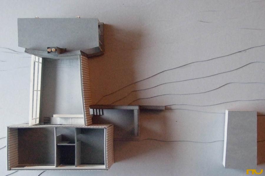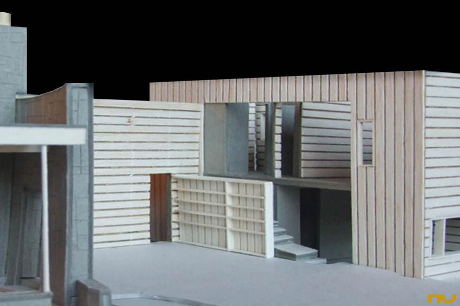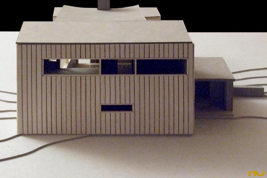 Si la composició exterior del volums independents s’identifica amb el període de formació de l’arquitecte, la seva lògica d’articulació denota també una subtil relació amb la tradició domèstica angloamericana, definint una espècie de sincretisme reforçat, encara més, per la elecció dels material com la fusta i la pedra.