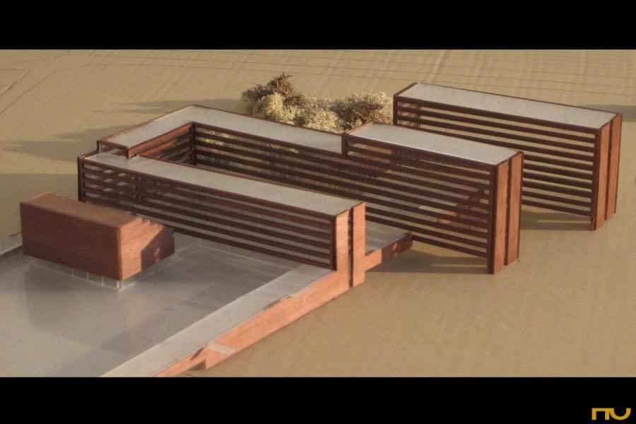 El programa funcional d’aquest extens complex (al voltant de 100.000 m2) s’estructurava en tres fases i grups diferents d’edificis. El primer grup corresponia als més propers a la gran plaça: La Sala del Consell, la Assemblea Municipal i el Secretariat. El segon grup estava constituït pel Departament de Finances i el Comitè d’Edificació i el tercer, pels Departaments d’Urbanisme, Infraestructures i Sanitat. La maqueta que s’exhibeix aquí representa la primera fase; en una segona fase els altres edificis del complex haguessin arribat a tocar els límits dels carrers que emmarquen la mansana de l’emplaçament.