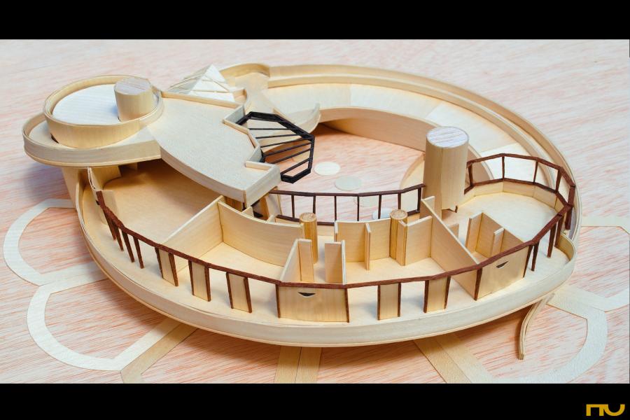 Els efectes produïts per les possibilitats que ofereix la curvatura de les parets i els continus canvis de punt de vista provoquen una interessant experiència espacial. La sala d'estar-menjador ocupa una gran part de l'anell circular i està orientat sobre l'eix nord-sud; una catifa amb motius multicolors derivats del cercle cobreix gairebé tot el terra. La cuina -workspace- retolada té forma tronc-cònica i s'encasta a la corona circular principal; arrencant des de l'hall d'accés, una escala interior es desplega per l'intradós d'aquest tronc de con fins a la terrassa-torre situada a sobre. Les habitacions, de mesura més reduïda, es desenvolupen al llarg de l'arc de circumferència, obrint-se cap a l'oest i es comuniquen a través d'un corredor que ofereix vistes cap al jardí central i a la piscina en forma d'ametlla al costat de la rampa.