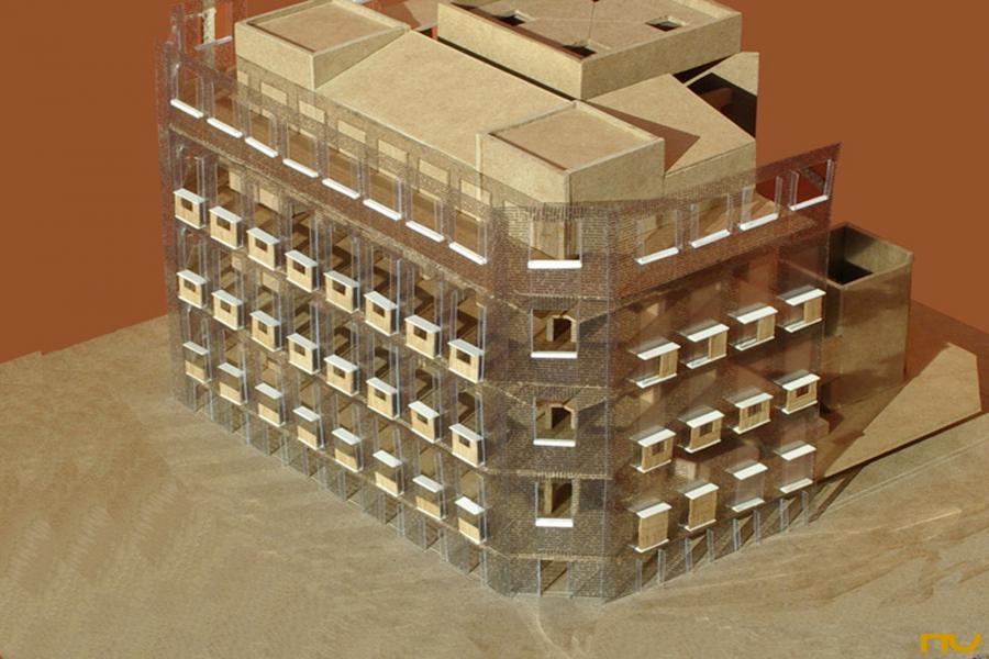 Les variacions i ajusts -de vegades com a conseqüència de restriccions imposades pel client- tenen lloc fonamentalment en diferents aspectes del que Kahn anomenaria el Disseny de l'edifici: les façanes, les cantonades, la secció i la resolució de la il·luminació zenital central. Les façanes de la primera versió es composaven de seqüències d'arcs de mig punt de mao, que en la versió definitiva es transformen en uns subtils arcs plans sobre intercolumnis estrets; a l'interior aquests donaran lloc als espais de lectura individual, "una mena de lloc descobert als plecs de la construcció", segons el propi Kahn declara. Les cantonades perden, ja des de la segona versió, unes torres triangulars que articulaven els canvis de ple per presentar-se com plans recedits respecte de les façanes principals amb dues conseqüències: la major independència formal dels plans de façana i el trasllat de l'accés des de les torres a l'eix de l'edifici i més a prop de l'hall principal. La secció canvia en eliminar-se una mezzanina, el que provoca una ruptura en la igualtat entre plantes expressada en façana. Finalment, l'aparell zenital evoluciona des de la forma piramidal fins a adoptar la forma de dues grans aspes de formigó creuades i girades en diagonal respecte de la planta.