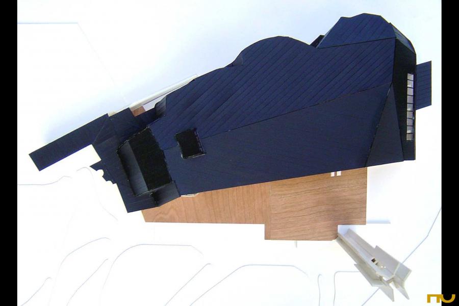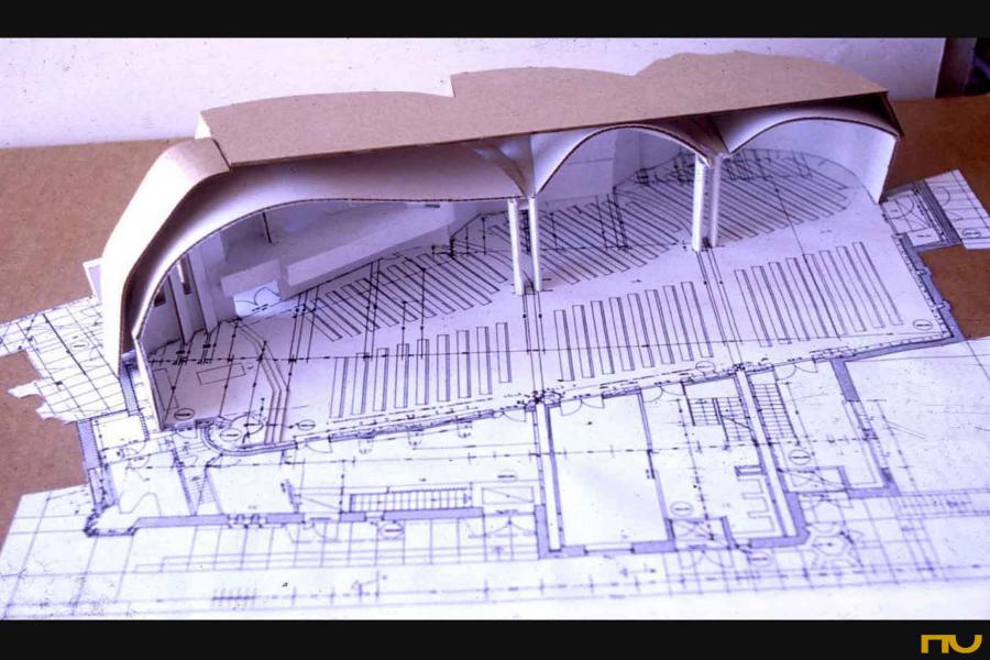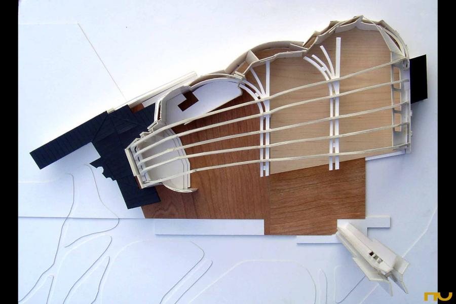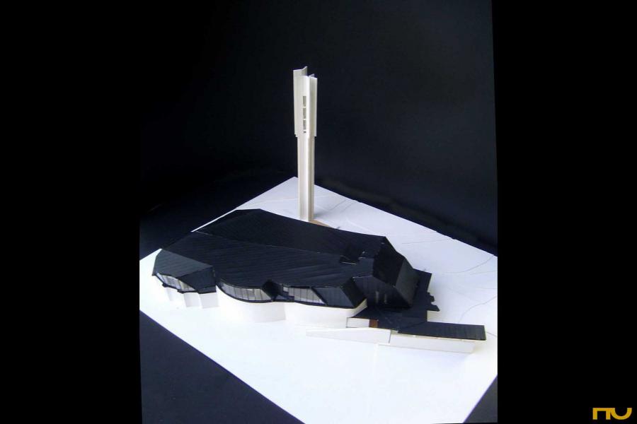 addició, doble pell, edifici religiós, forma corba, orgànic, trapezi,